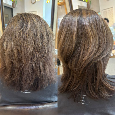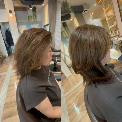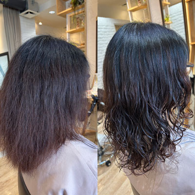 同時に顔周りなどのクセをストレートにすることができるのでクセ+パーマがうまくいかない方やクセで悩んでるが縮毛矯正よりウェーブを出したいなどのお悩みの方にオススメです。