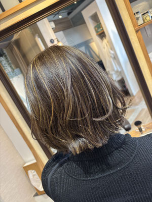 ※アルカリ量をコントロール出来る微酸性カラーをメインに外国人風白髪染め(スロウカラーマージ)、オルディーブカラーなど白髪染めデザインに合わせたチョイスをしております